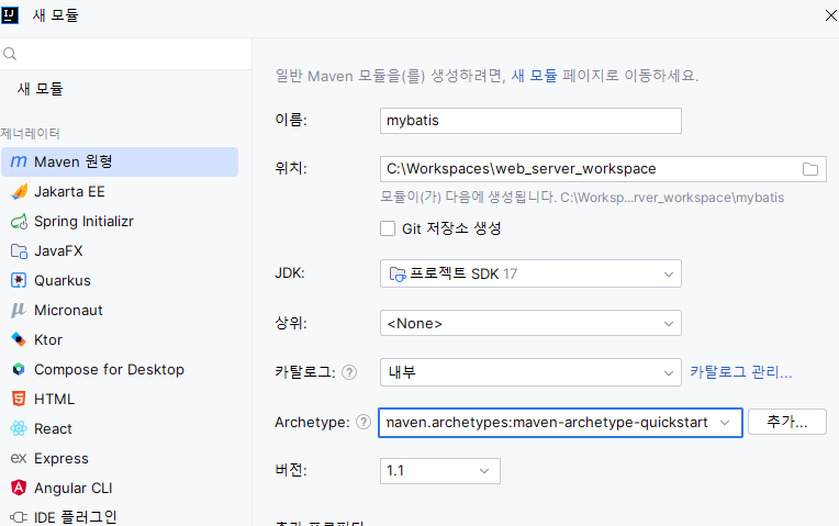 jdbc myBatis connection SqlSession 1.새 모듈로 추가